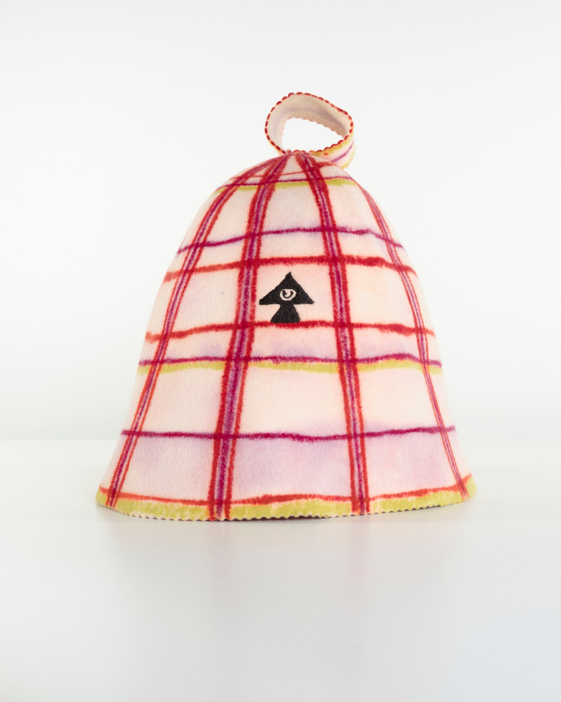 Tina Tartan Sauna Hat / Simmerdown x Ruuts Studio. Equipment research focused on advanced thermal management, sensory enhancement via mist application, and natural material expression within the sauna environment.